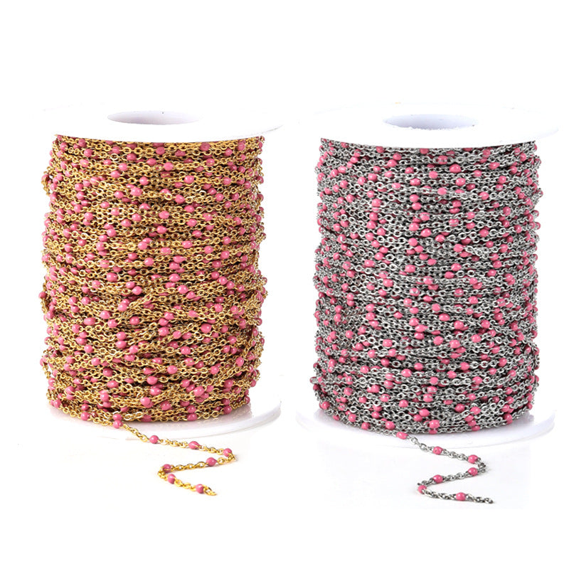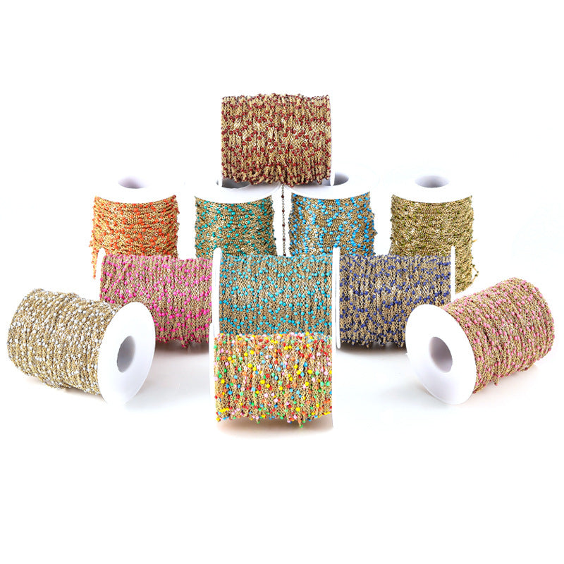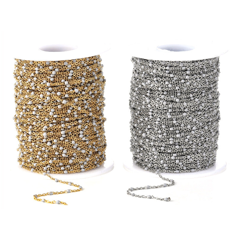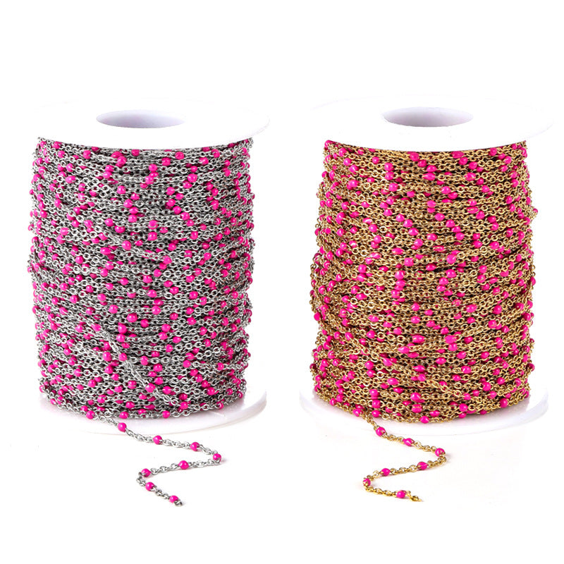 C1076 Enamel beads Chain-Vacuum Plating Waterproof Stainless steel chain