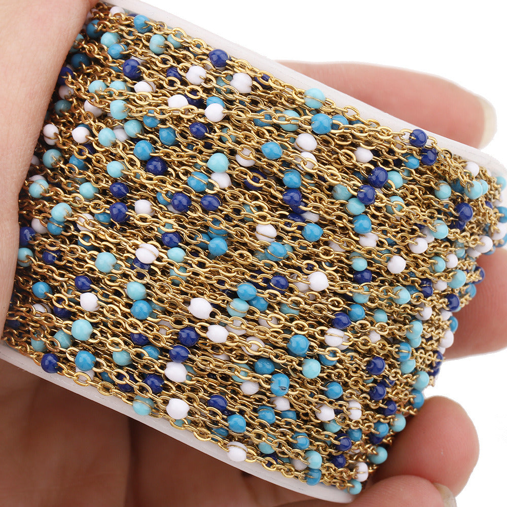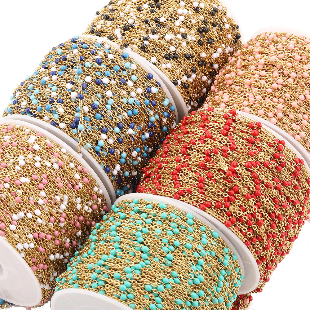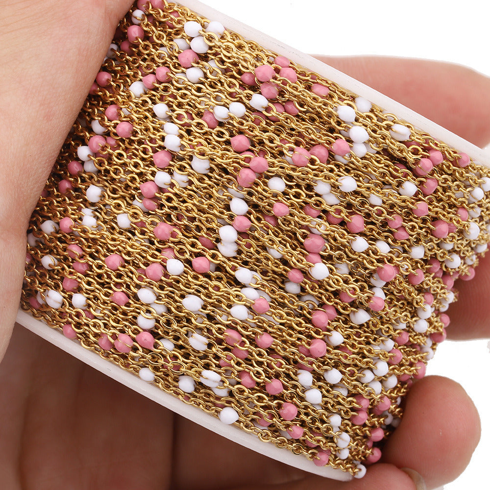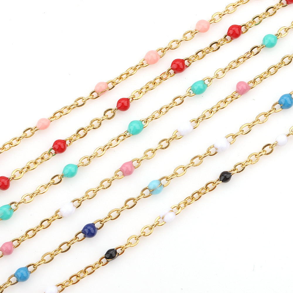 C1295 Enamel beads chain-Vacuum Plating Waterproof Stainless steel chain