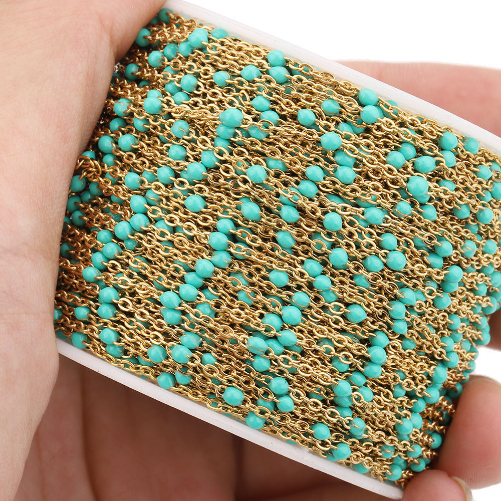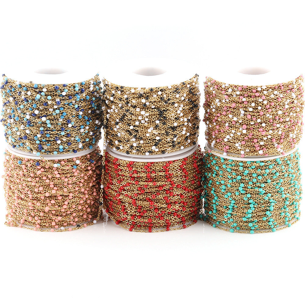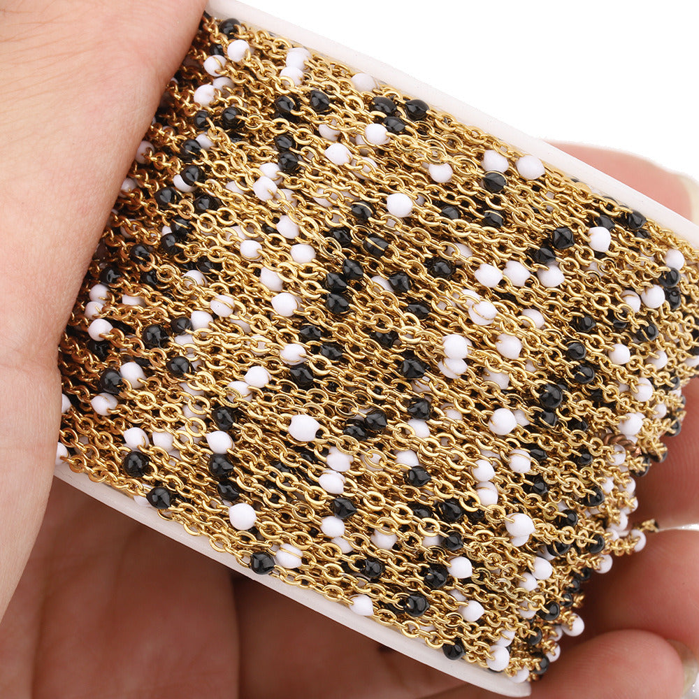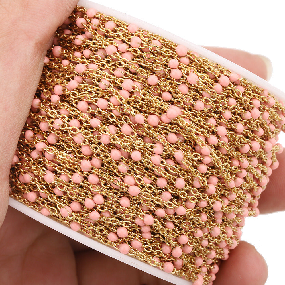 C1295 Enamel beads chain-Vacuum Plating Waterproof Stainless steel chain