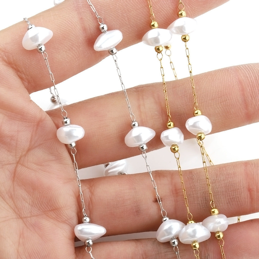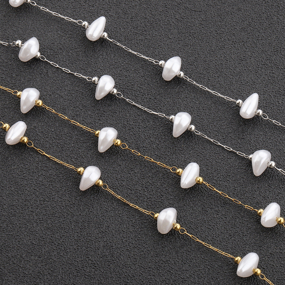 C1455 8mm triangle baroque pearl handmade chain-Vacuum Plating Waterproof Stainless steel chain