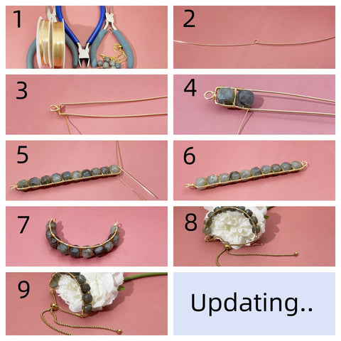 Make one bracelet need: 10 beads,1mm copper wire: 50cm ,0.4mm copper wire 180cm, 1 adjustable chain